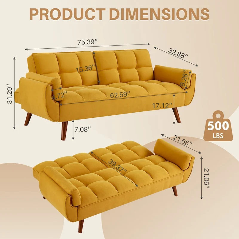 - Compact and stylish: This versatile futon is perfect for small spaces, offering a modern design that seamlessly combines entertainment and comfort. Made with high-quality materials, this convertible couch is a sturdy and cozy seating option that easily transforms into a bed for a good night's sleep.
