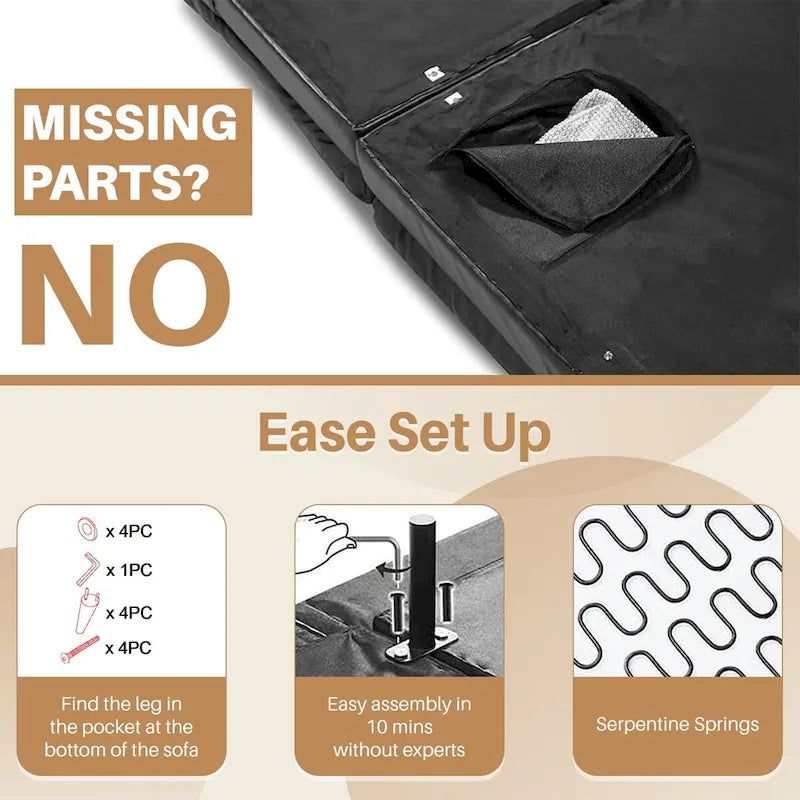 - Easy assembly: All necessary accessories for assembling this futon are conveniently stored in a hidden pocket at the bottom of the cushion. With a quick and easy assembly process, you can have this futon set up in just 15 minutes.