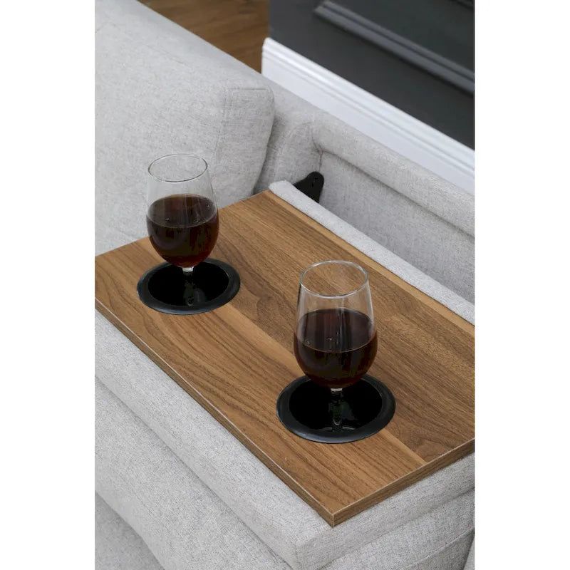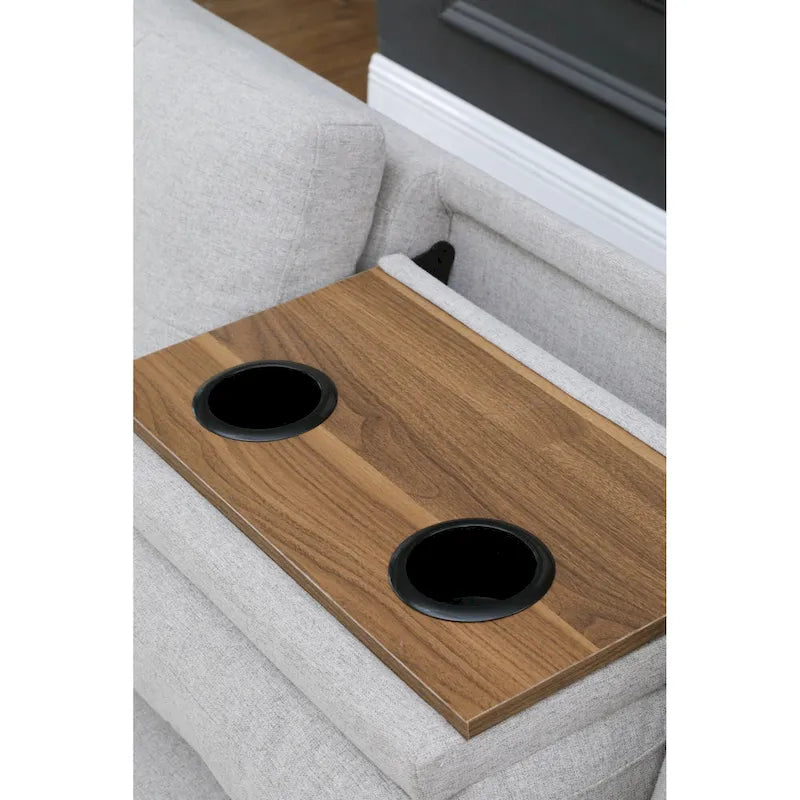 This sofa-and-chaise sectional features an L-shaped design that provides you with ample room to stretch out and relax, even in space-conscious homes and apartmentsIt has a manufactured wood frame that rests on low-profile dowel legs for a modern look.Wrapped in a linen blend fabric, it comes in a neutral tone that matches with almost any style or color schemeFoam-filled cushions give you plenty of support. Rounded arms, nailhead trim, and subtle tufting in the back add a traditional feel we love. A storage ottoman and two toss pillows are also included