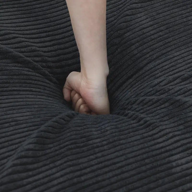 Black Corduroy Sectional Sofa Customized Sofa Couch with pillows.