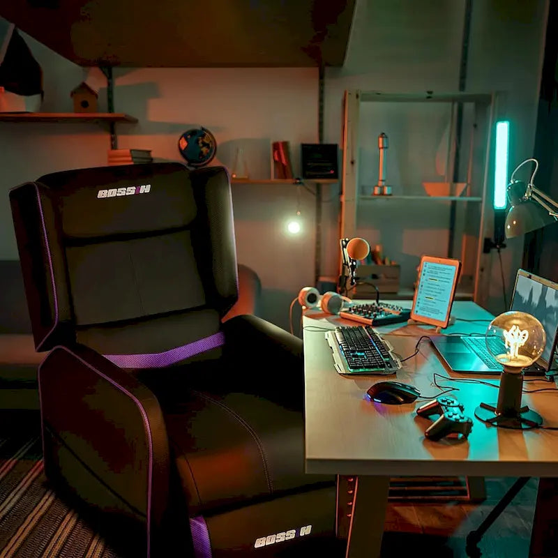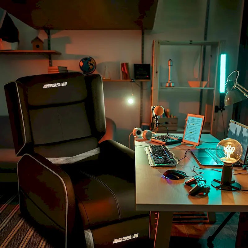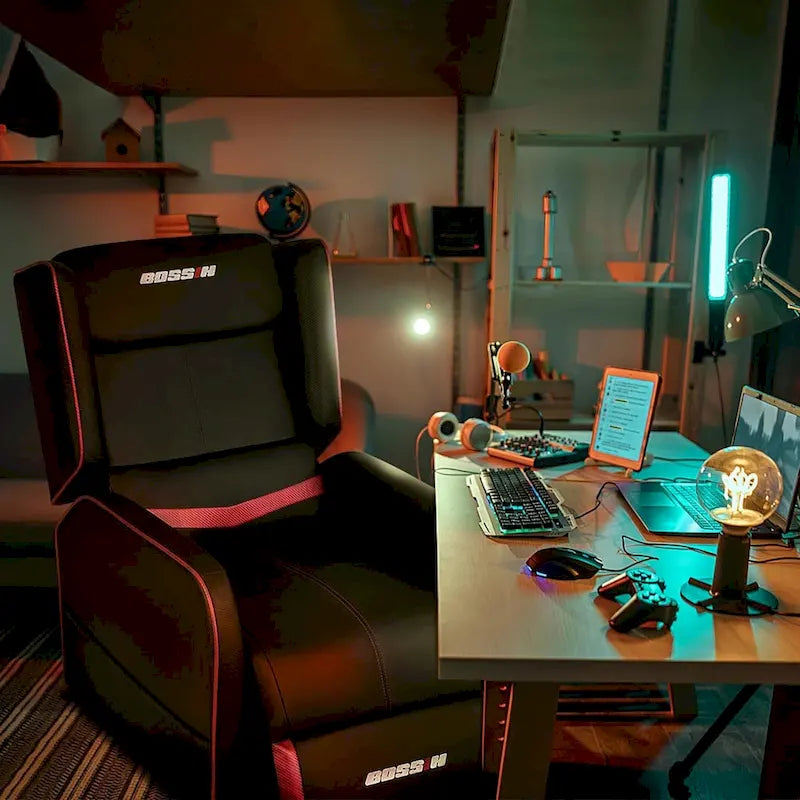 BOSSIN PU Leather Ergonomic Gaming Single Recliner Seating Sofa for Living Room