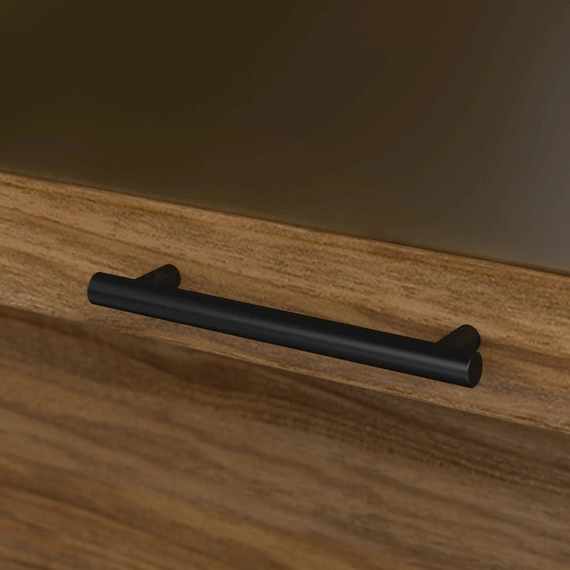 - Transitional styling includes tapered leg accents, an elegant finish and contemporary metal hardware
