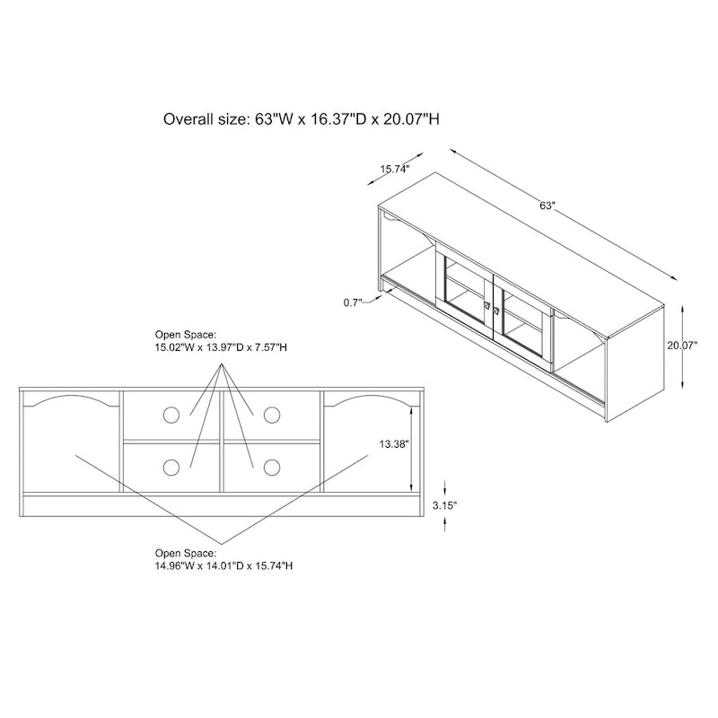 - Overall: 20 inches high x 62 inches wide x 16 inches deep