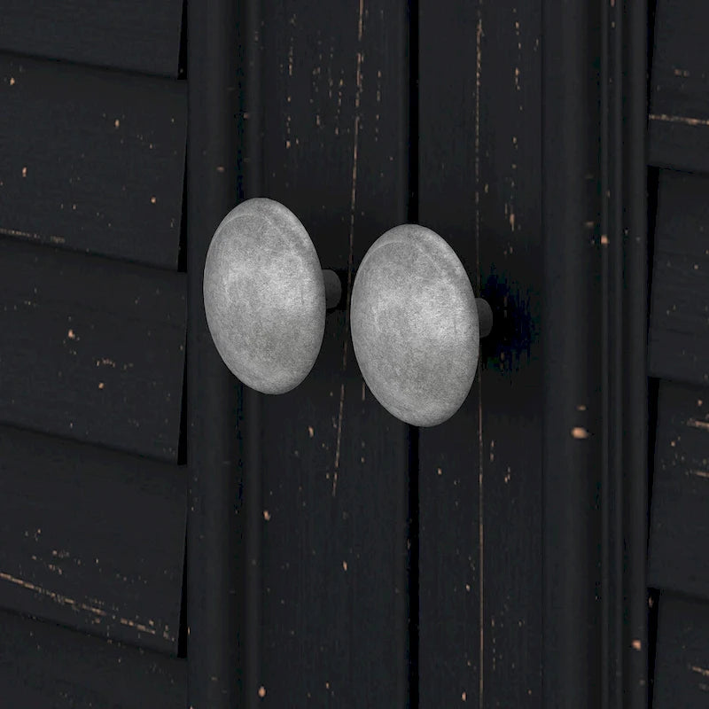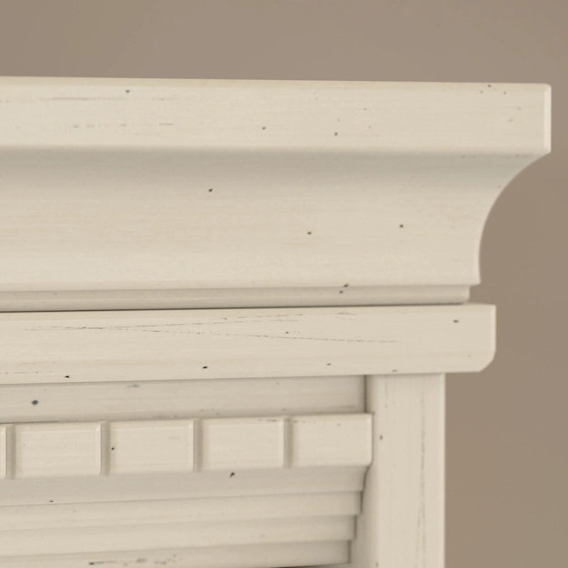 - Hutch features two small cabinets with stylish louvered doors for concealed storage