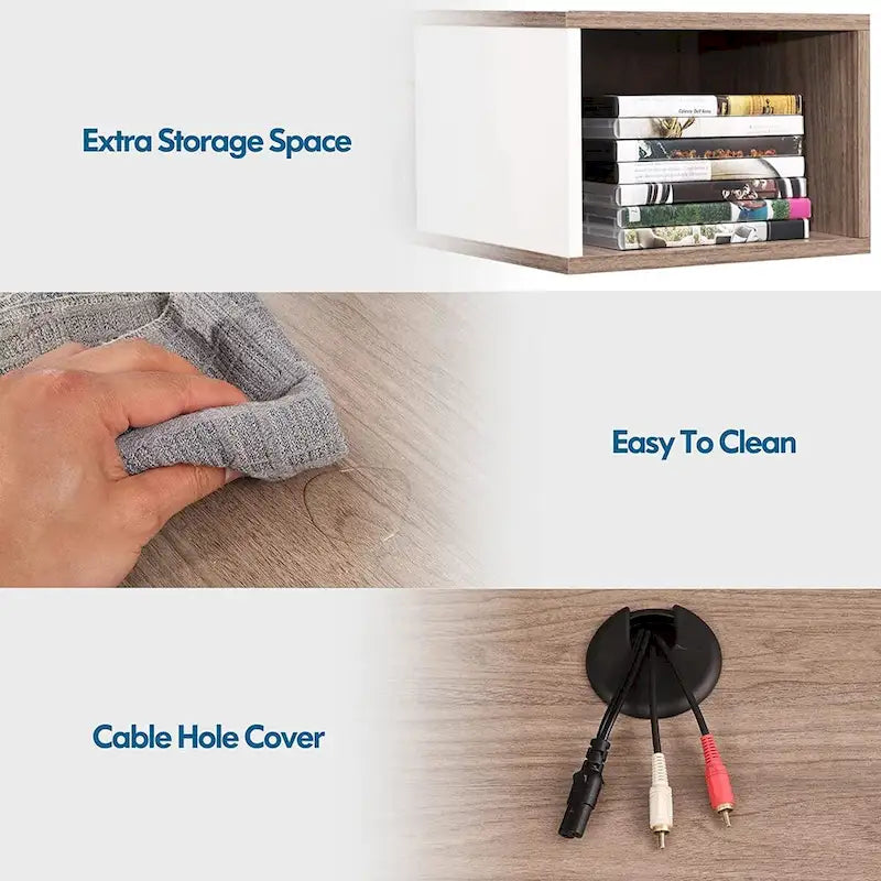- WIRE MANAGEMENT: Media Console Shelf have cable hole for hiding your frequently used wires, this design will keep all cables and wires neatly organized and within reach. This floating tv stand is suitable for living room, bedroom or reception room.