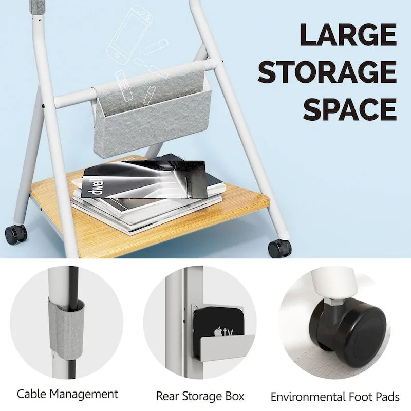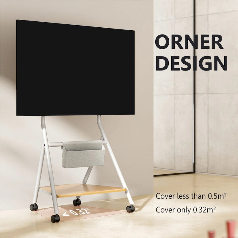 Introducing the FITUEYES Mobile TV Cart for Office Classroom Rolling TV Stand with Wheels for 45-88 Inch TV, from the Collector Series. This TV stand features a minimalist design that is both stylish and functional. It solves the common problem of bulky and large traditional entertainment centers, providing a slim and stable solution. Choose from six different colors that will fit perfectly with any decorating style. With wheels and adjustable height, you can easily move the TV stand to your desired location and find the perfect viewing angle for a comfortable and ergonomic experience. Stay organized with the large open shelf, storage bag, cable straps, and cable box mount. Upgrade your living and working environment with this versatile and modern TV stand.