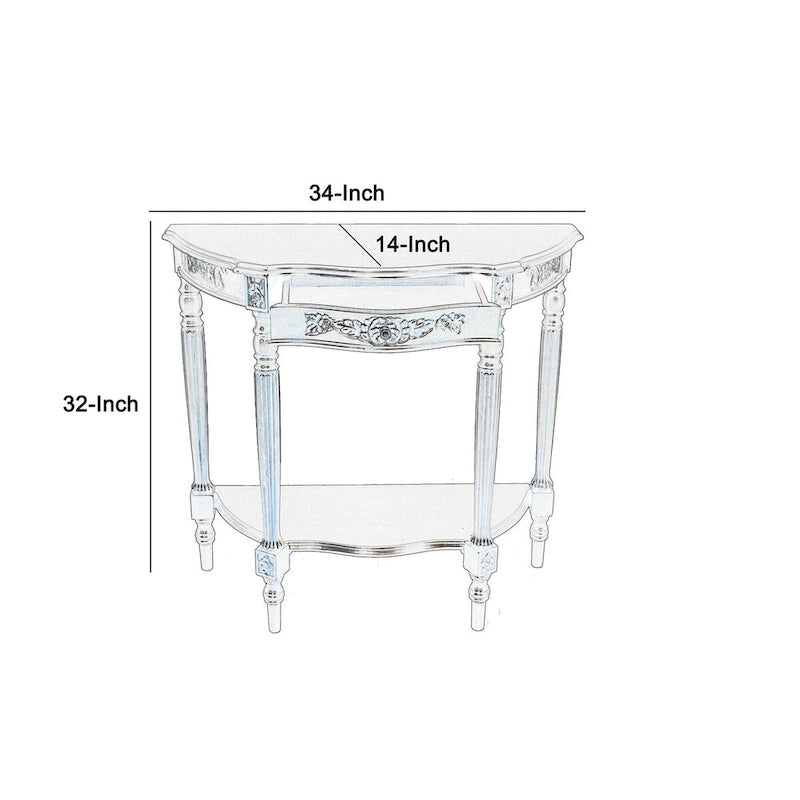 Half Crescent Moon Shape Engraved Wooden Console Table with 1 Drawer,Brown