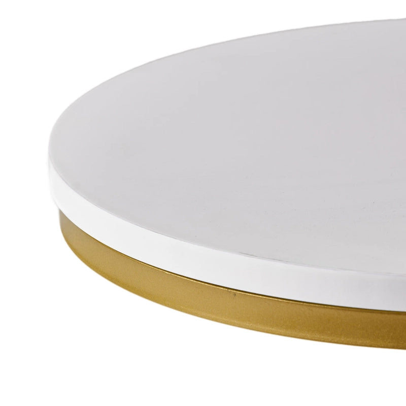 IRON FRAME: Constructed of iron, the frame of this end table is made to be incredibly durable, ensuring that this piece will hold up under use. Refined with a brilliant gold finish, this table brings an elegant touch to this piece, making it an understated yet chic addition to your home.