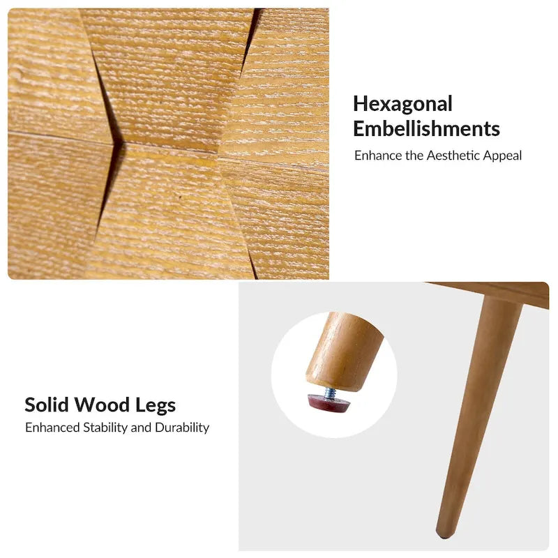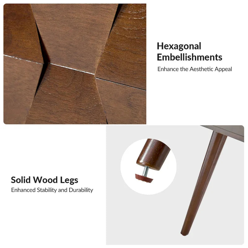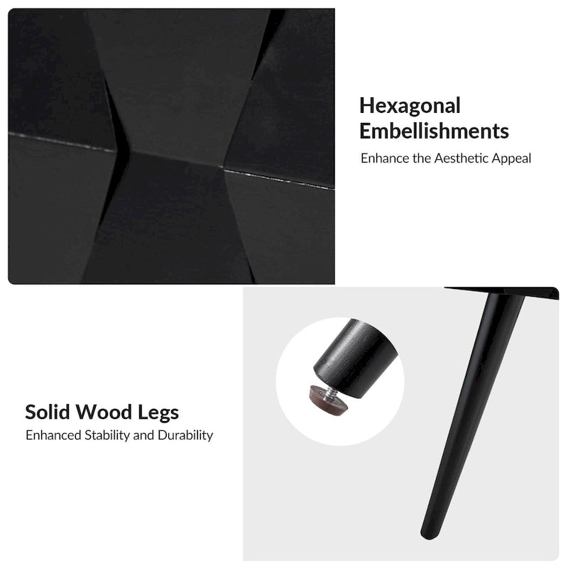 - Hexagonal Embellishments with Raised Geometric Patterns: The raised patterns create a tactile experience and enhance the overall design of the table.