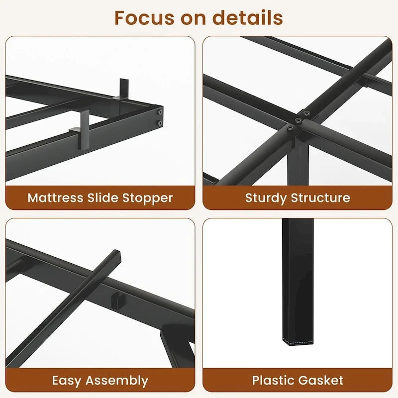 - Mattress Sliding Blocks:Each bed frame comes with 4 mattress sliding blocks that fit securely without screws. These blocks are designed to prevent mattress movement and enhance stability.