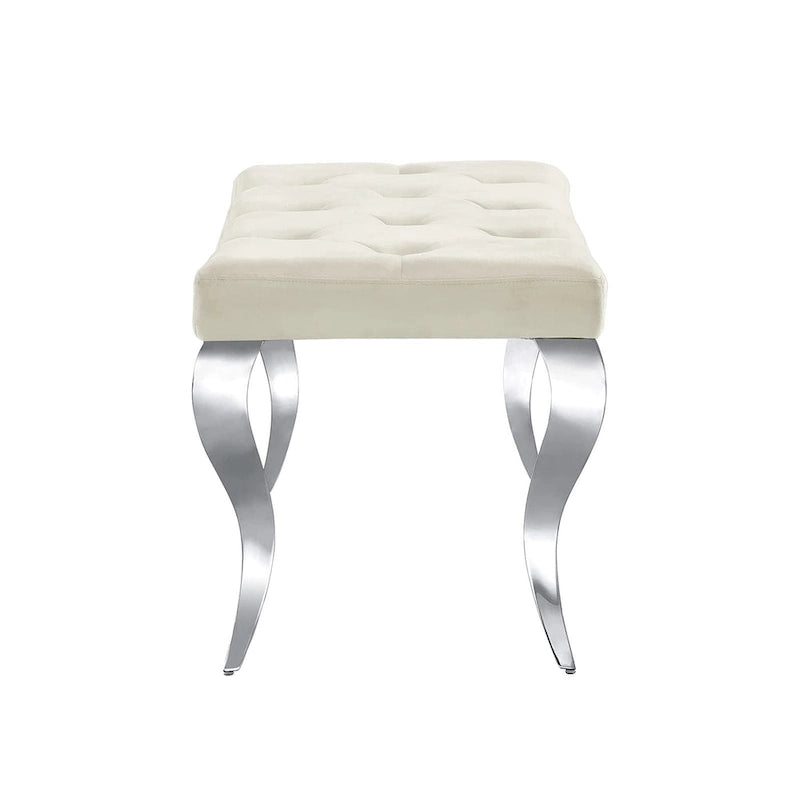 3. White Velvet Bench: The white velvet bench brings brightness and a touch of luxury to any room. Its clean and crisp appearance makes it suitable for contemporary or modern settings. The white color enhances the perception of space and serves as an elegant and eye-catching addition to your home decor.