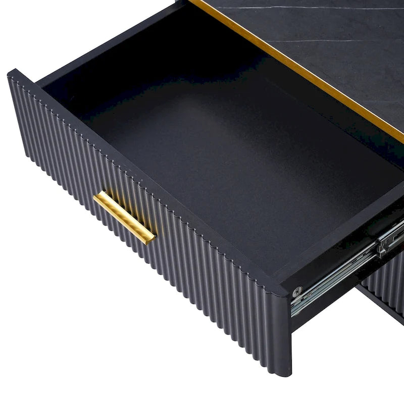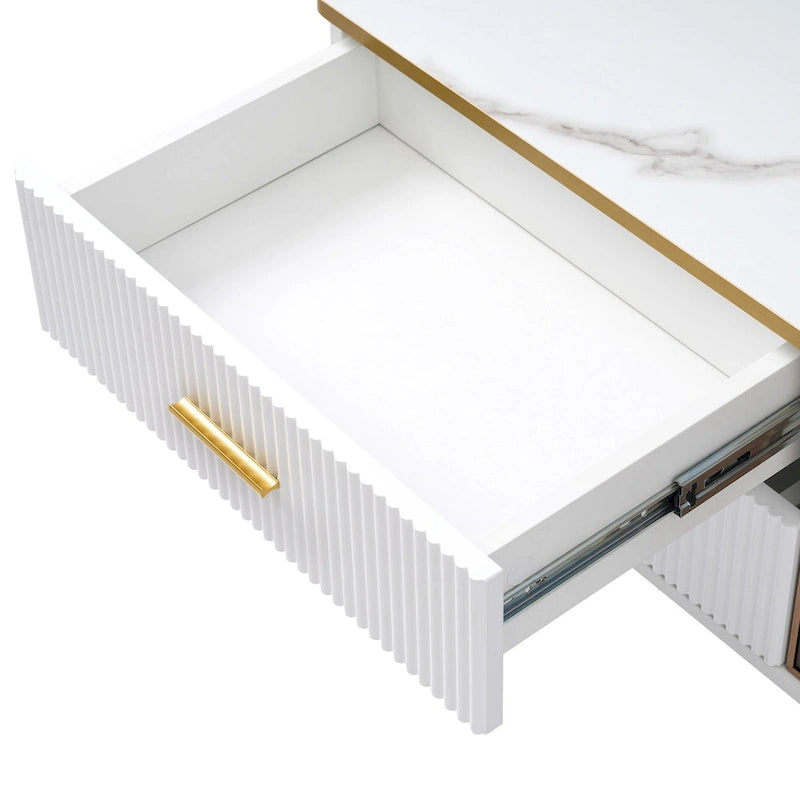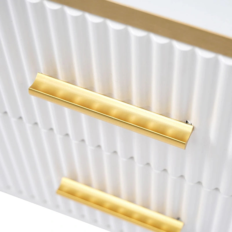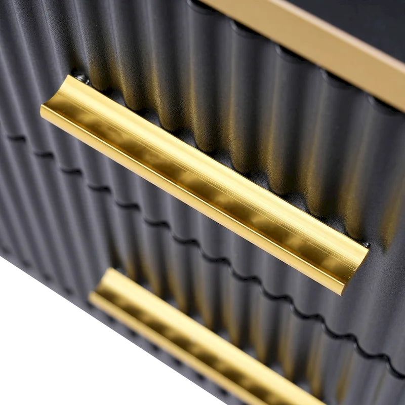Media Console Table with Glass Storage Cabinet,Golden Legs & Handles