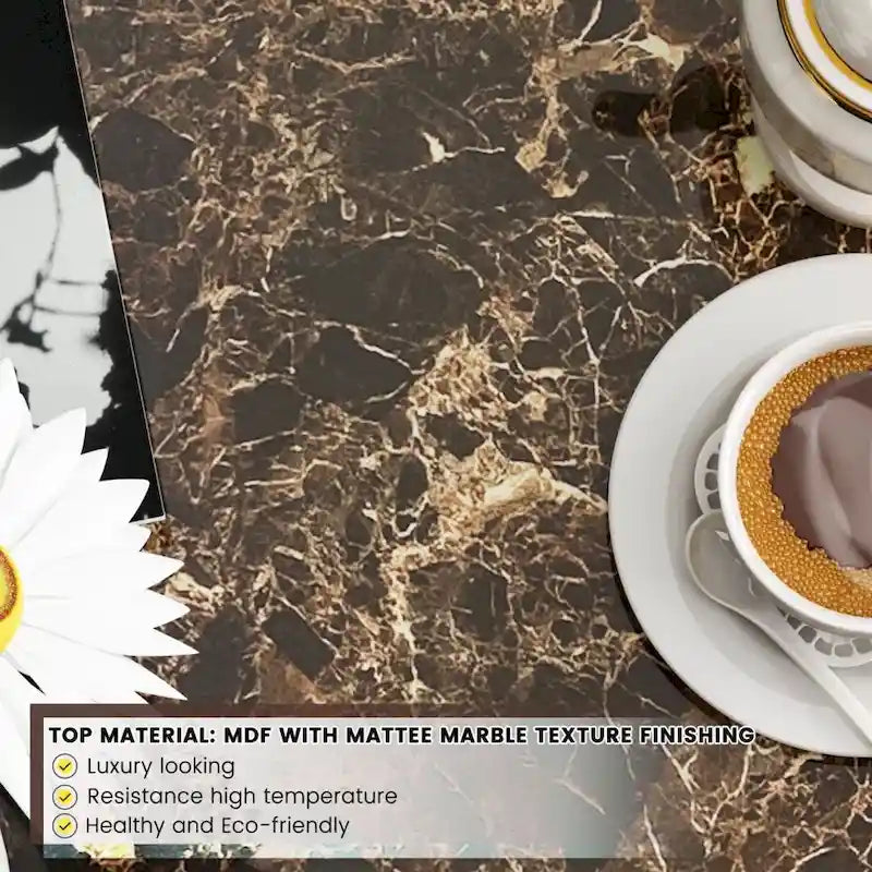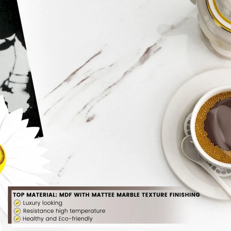 - Material: MDF Board with Marble Texture Finishing + Steel Frame