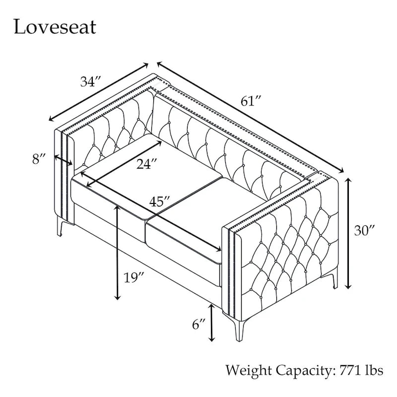 Introducing our Modern Loveseat with Deep Dutch Velvet and Iron Legs, the perfect combination of comfort and style. This loveseat boasts a modern transitional design that complements any interior home dcor. The luxurious Dutch velvet upholstery adds an extra touch of elegance and creates a rich, plush feel. This loveseat provides ultimate comfort with its seat cushions that are filled with high resilience foam and polyester fiber wadding, while the overstuffed construction ensures long-lasting durability. Crafted with precision and attention to detail, this loveseat is constructed with a sturdy wood frame that guarantees stability and longevity.