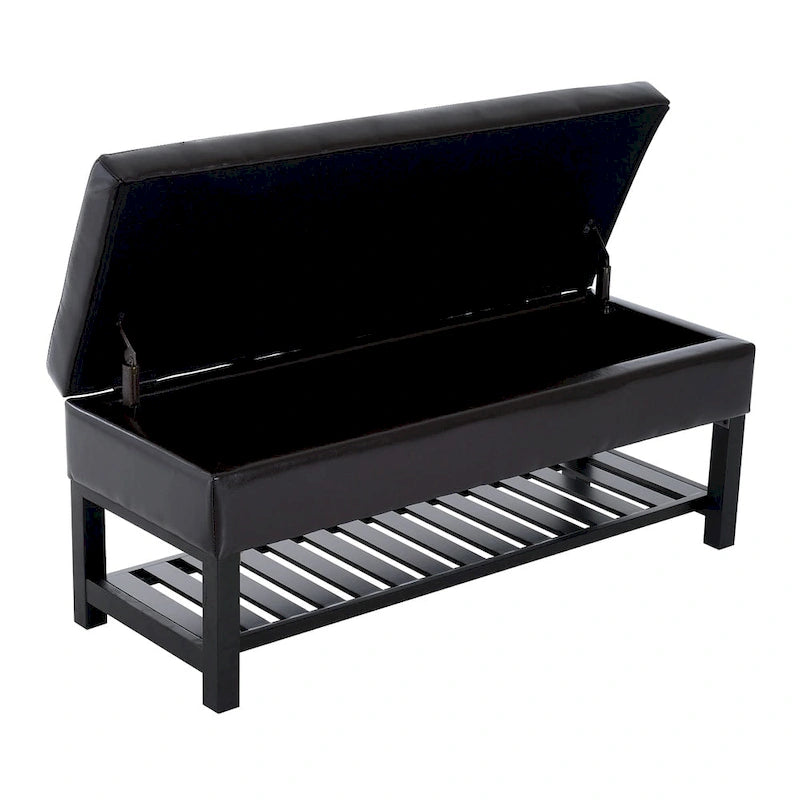 Porch & Den Westfield Brown Faux Leather Tufted Shoe Rack Ottoman Storage Bench