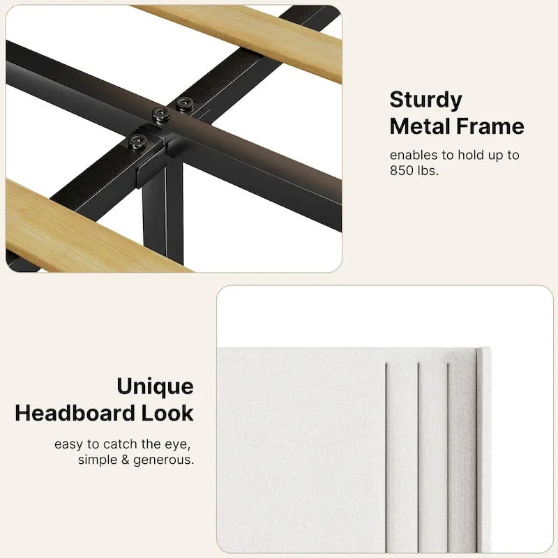 - Sturdy and Durable Frame: Adopting sturdy frame structure, after strict quality testing to ensure the stability and durability of the bed frame. The solid support system effectively disperses pressure and reduces noise, allowing you to enjoy every night with peace of mind.