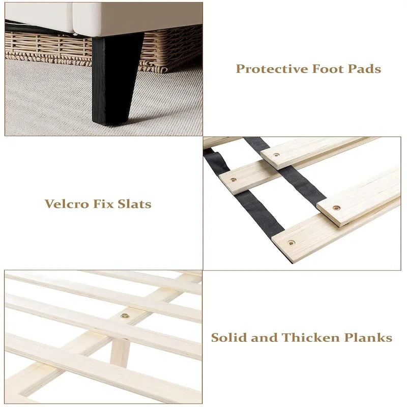Noiseless for Comfortable SleepFeaturing solid wood slats and mute bars designed to prevent friction, our bed frame offers a silent sleeping experience, ensuring a restful night's sleep in the peaceful environment you deserve.