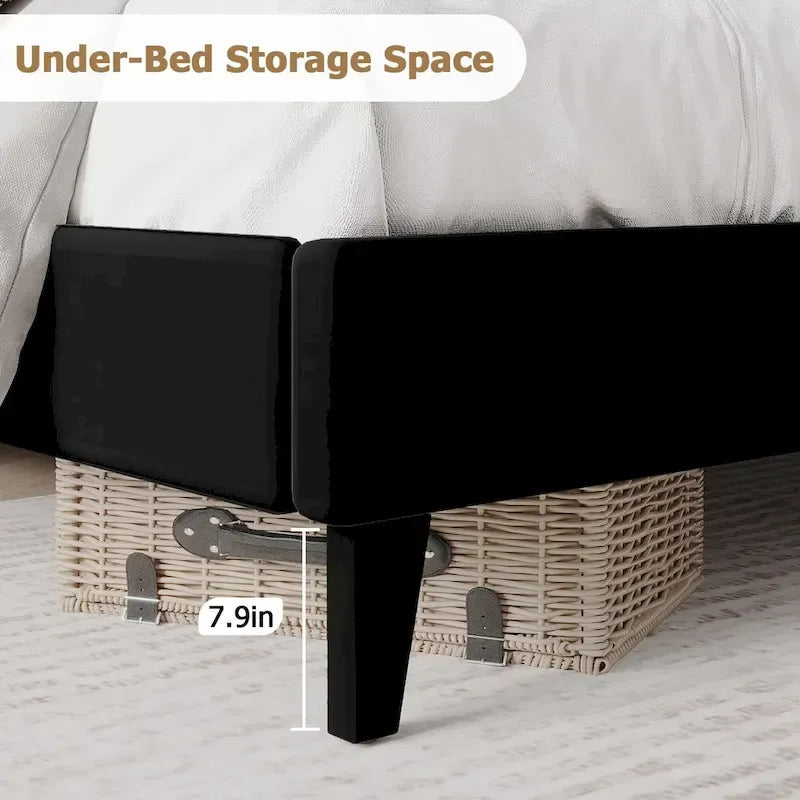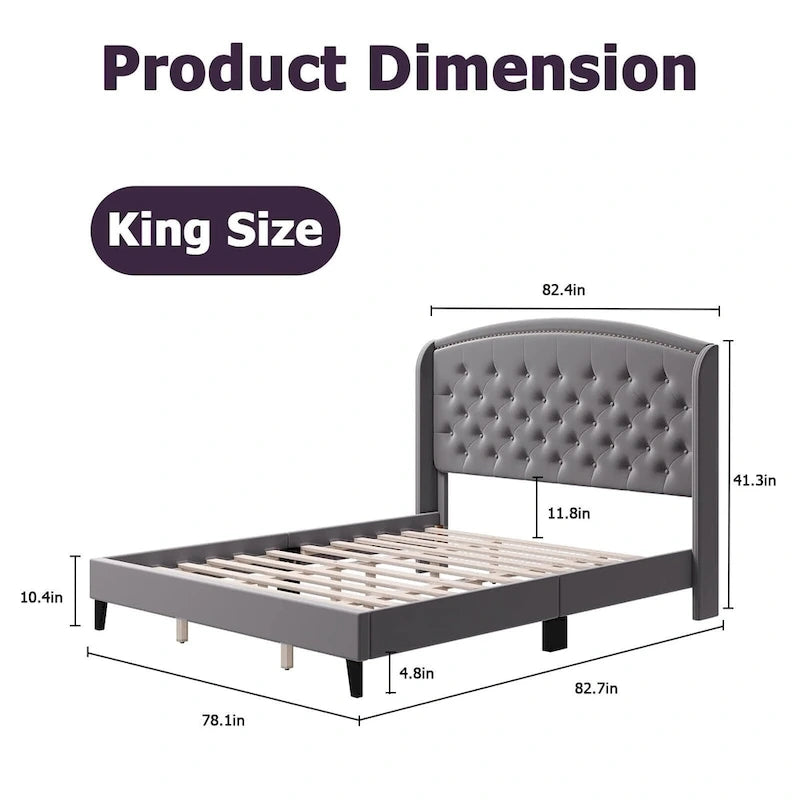 Modern Wingback DesignWith velvet fabric, button design and rivets decor wingback headboard, our upholstered bed frame exudes style and elegance, adding a touch of luxury to your bedroom. The padded foam headboard offers an extremely soft touch and sturdy support for comfortable leaning.