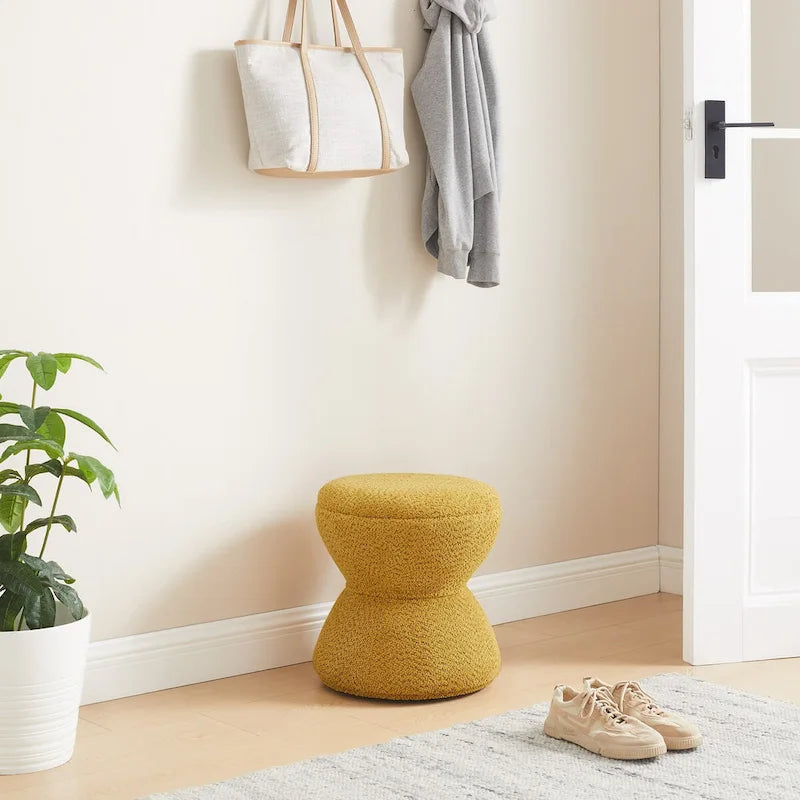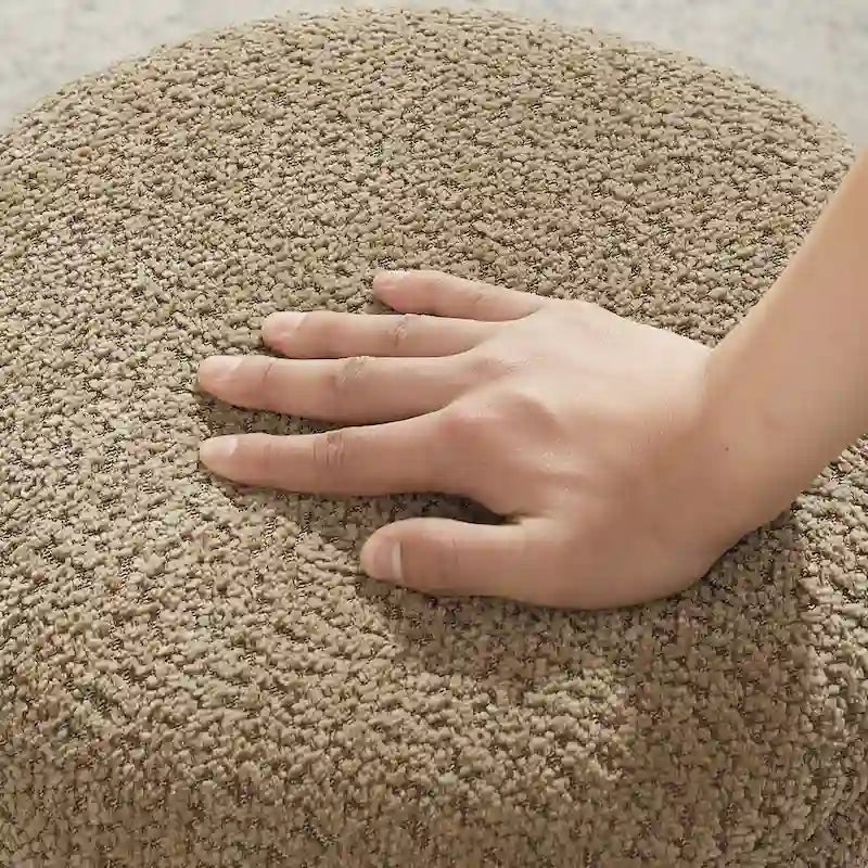 VANOMi Djembe Boucle Upholstered Ottoman with Swivel Base, Pouf, Swivel Vanity Stool for Living Room, Walk-in Closet